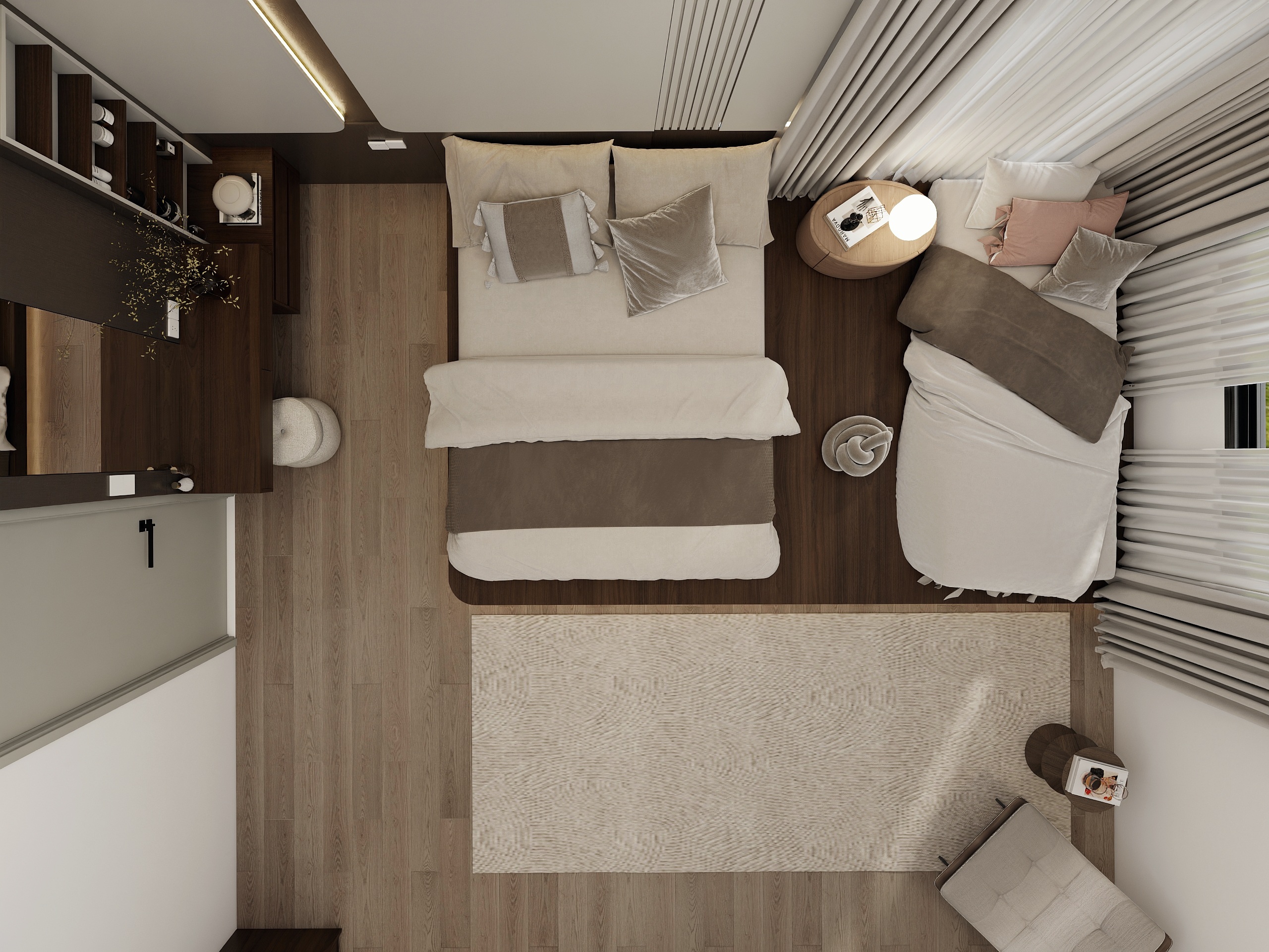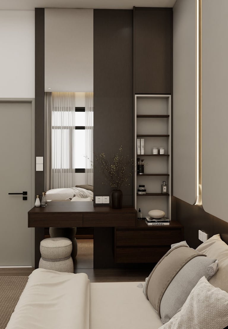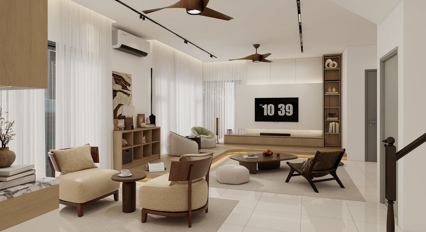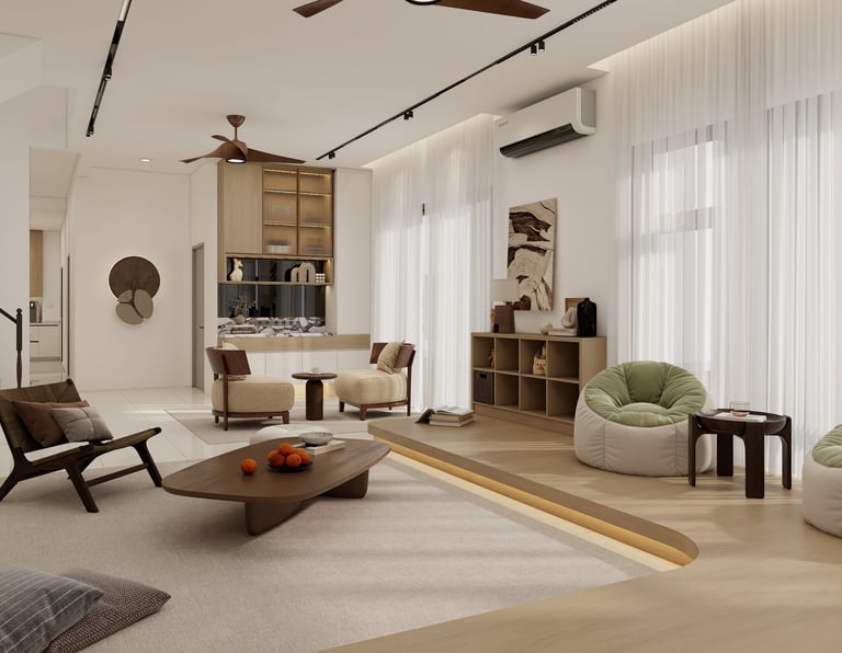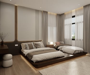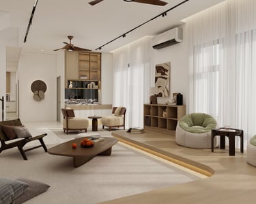 This project embrace a harmonious blend of Japanese minimalism and Scandinavian warmth. This design utilizes a neutral palette, organic textures, and low-profile silhouettes to create a fluid, light-filled sanctuary that prioritizes functional elegance and mindful tranquility.